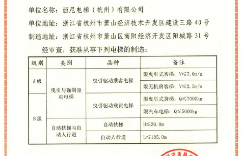 恭賀西尼電梯獲得7m/s超高速電梯制造A級(jí)資質(zhì)證書